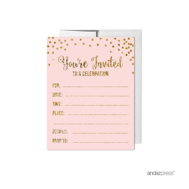 Pink Gold Glitter 1st Birthday Blank Party Invitations With Envelopes 20 Pack Walmart Com Walmart Com
